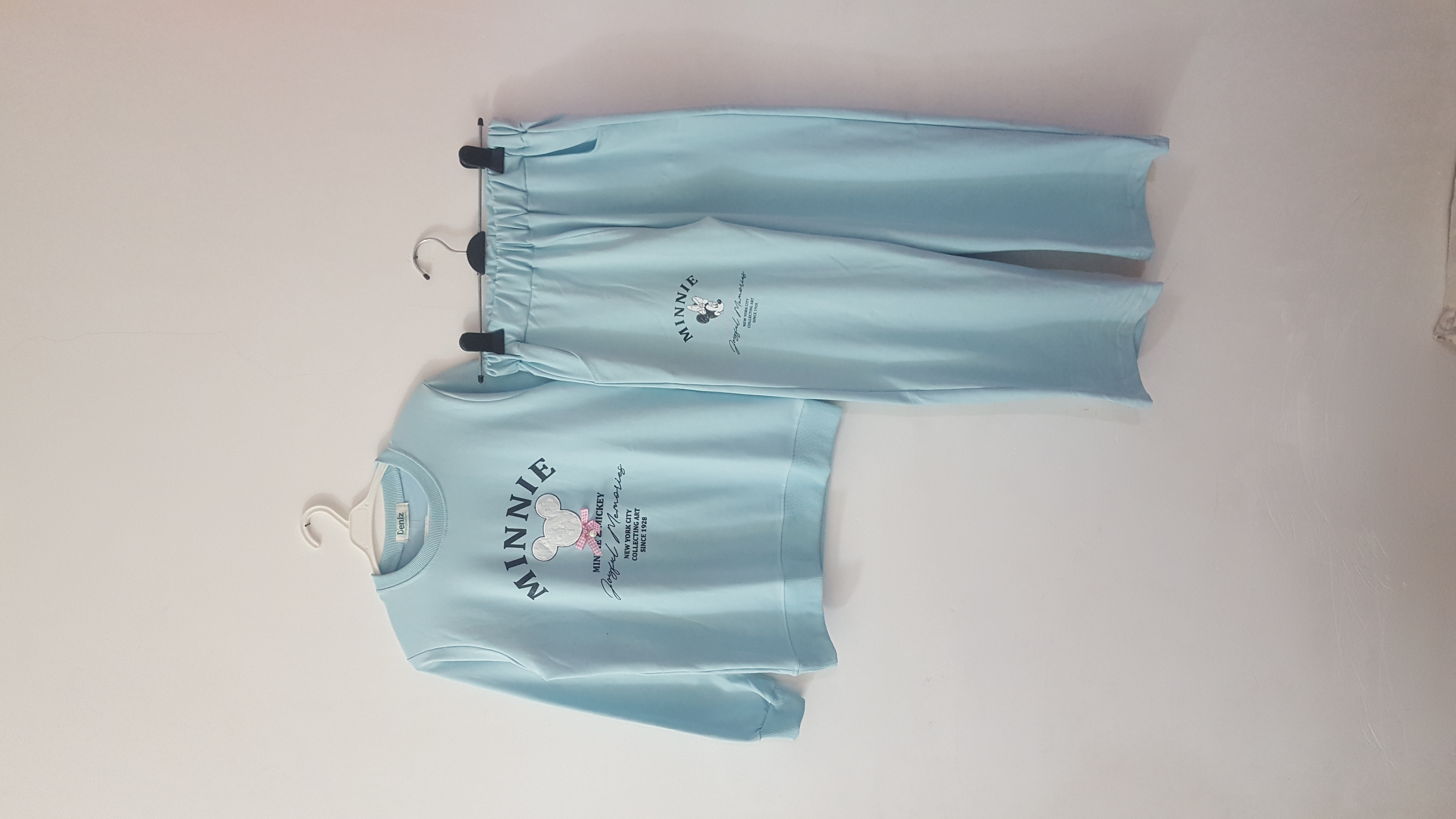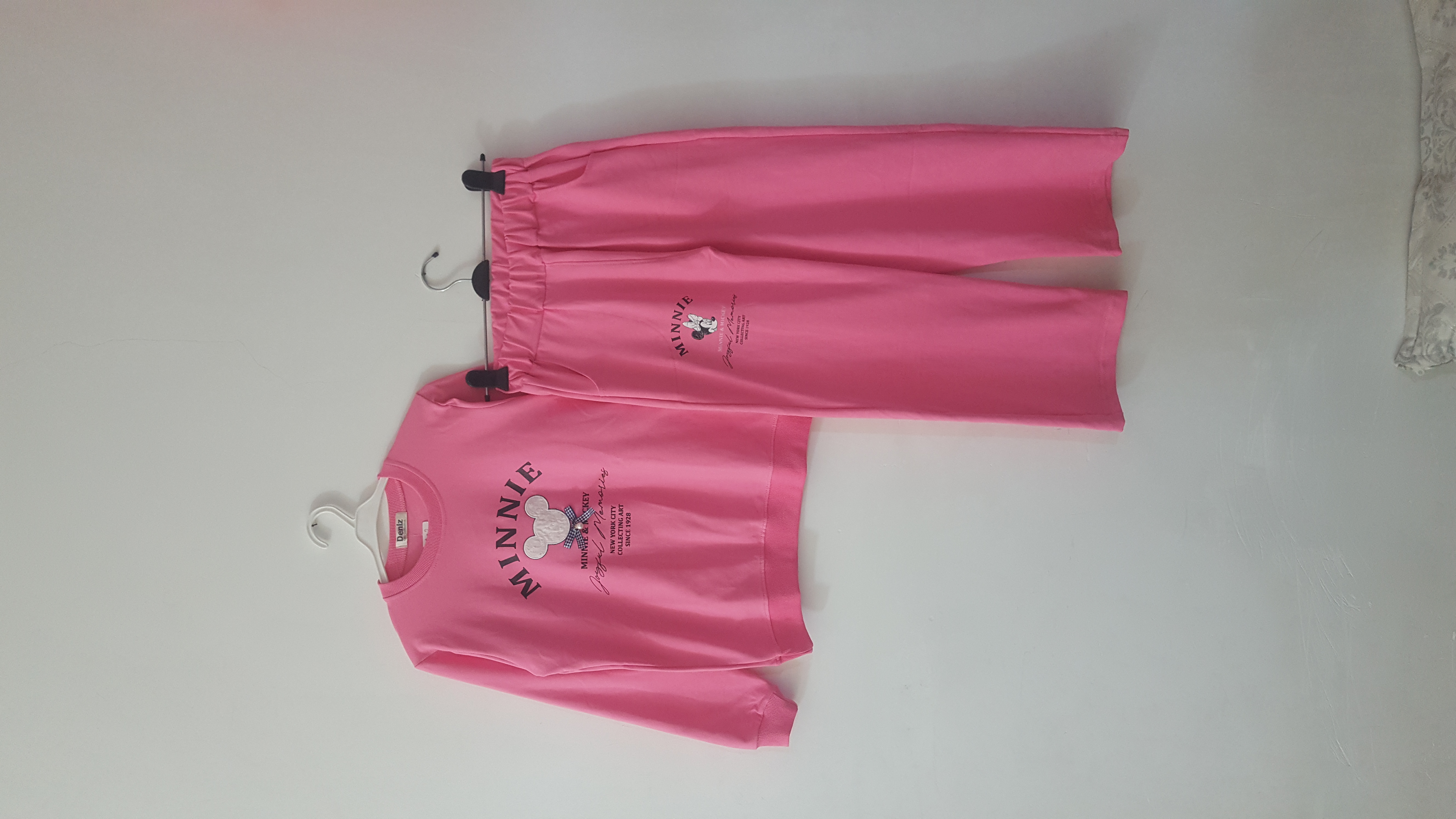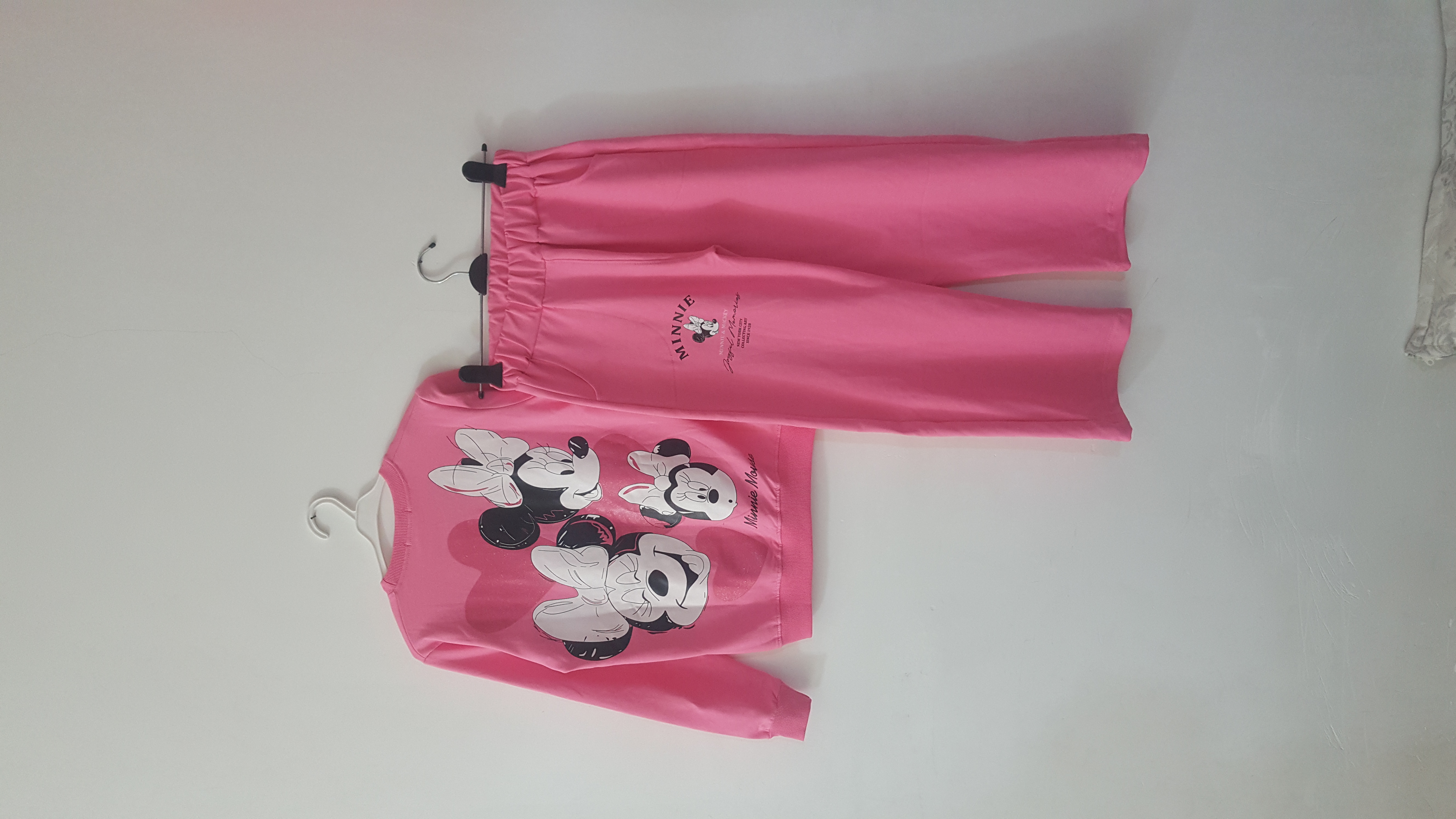 بلوز شلوار ست دخترانه آستین بلند گلدوزی میکی موس و قلب دخترانه با رنگ های: صورتی کم رنگ، صورتی پر رنگ، آبی آسمانی، سبز فسفری